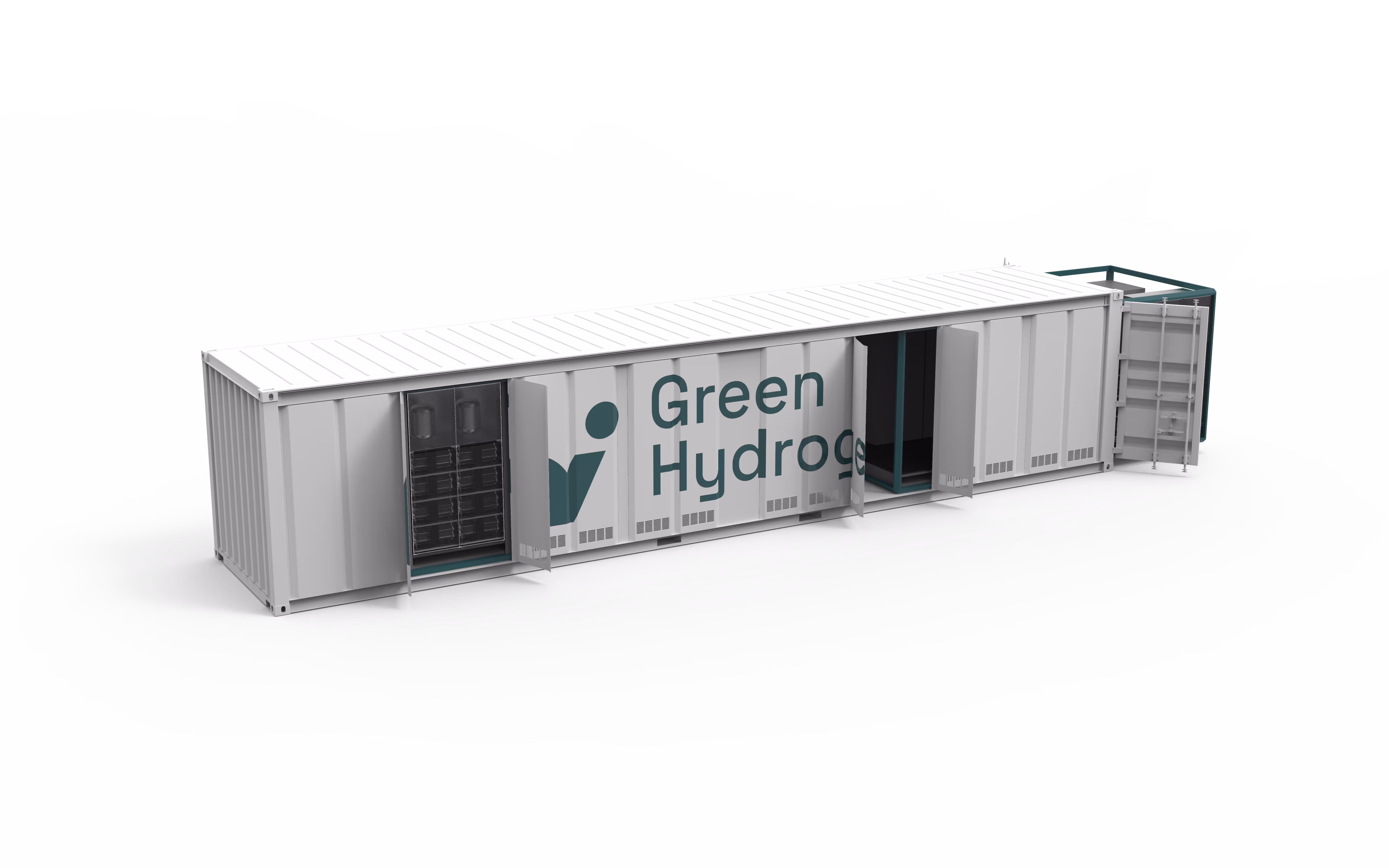 The H2iVE-SKID module is built on a platform that can be easily integrated into standardised containers. In addition to the necessary safety equipment, it has a central supply unit that provides the interface for fresh water supply as well as waste heat and oxygen utilisation.